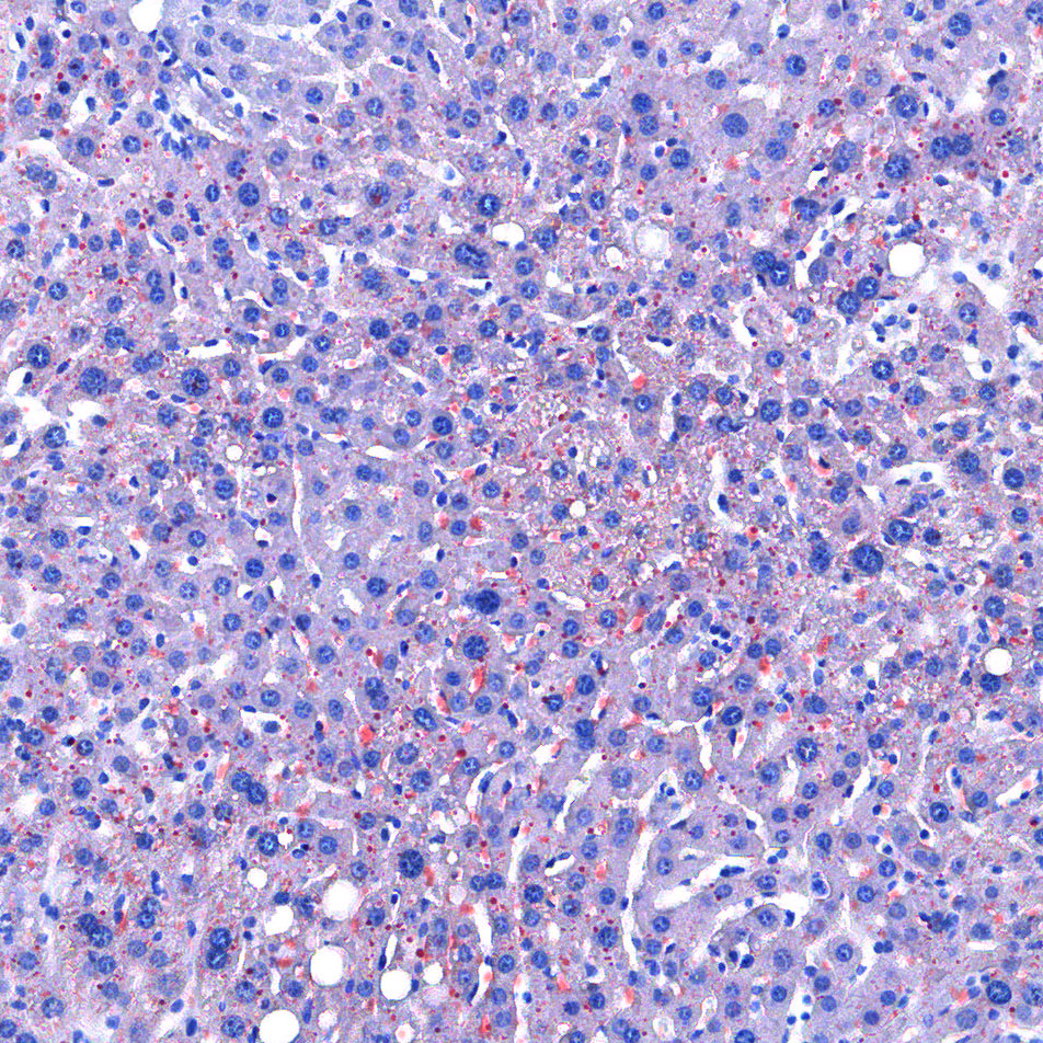 技术原理油红O对脂滴的染色机制一般认为是物理学上的溶液作用或吸附作用,借溶液作用使脂质染色,即油红O先溶于60%异丙醇中,然后切片浸入油红O染液中时,油红O在组织脂质的溶解度较60%异丙醇中的溶解度高,所以在染色时油红O从60%异丙醇中转移入脂质中使脂滴显示红色。实验流程实验结果展示:<油红O-肝>送样运