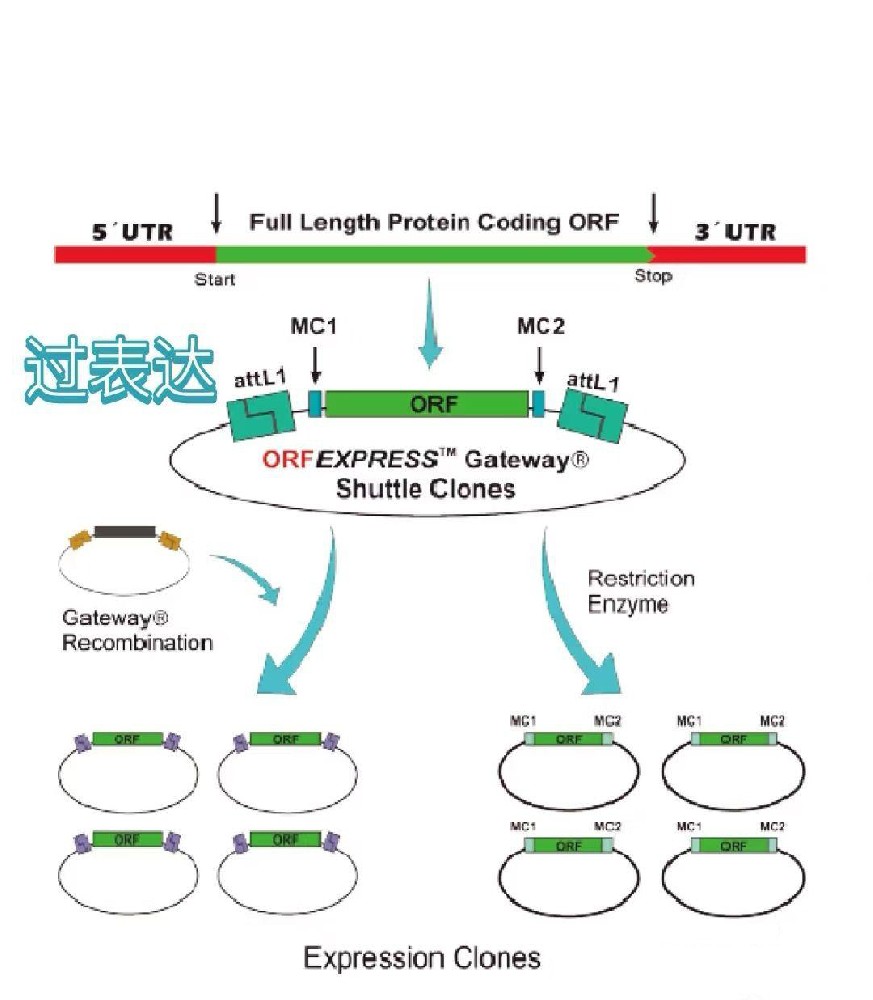 一:基因过表达(1)原理:将目的基因插入表达载体中,把表达载体转染到目标细胞里,在细胞表达出大量相关目的基因和其编码的蛋白质。(2)载体:①哺乳动物载体:转染到人···
