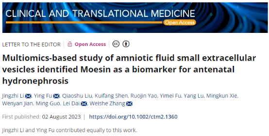 中南大学团队在胎儿肾积水分子标志物研究方面取得重要进展!